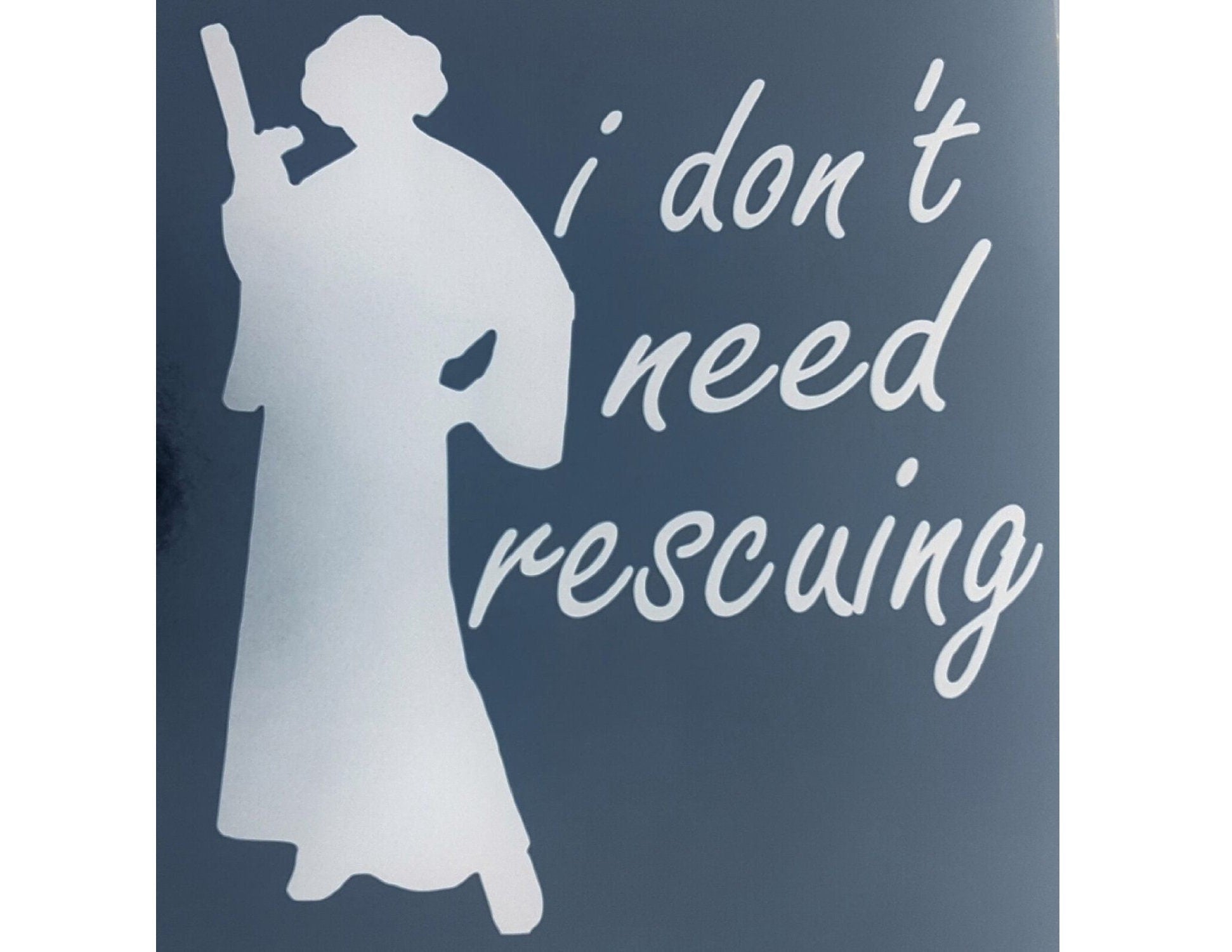 Carrie Fisher Princess Leia: I Don't Need Rescuing - Sticker Decal for Auto, Tablet, Laptop Lid, Rebel Girl, Lady Warrior, Empowered Woman